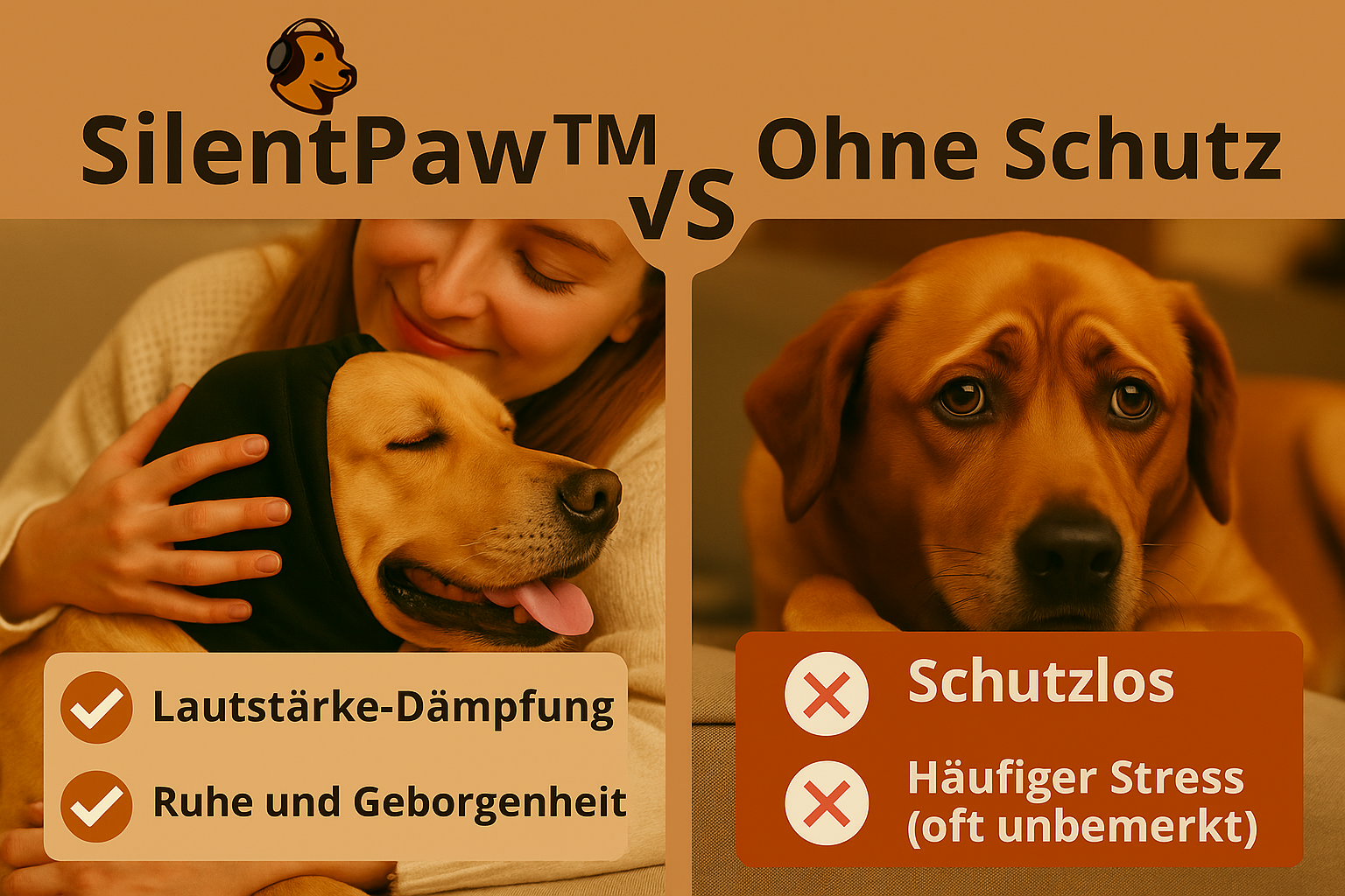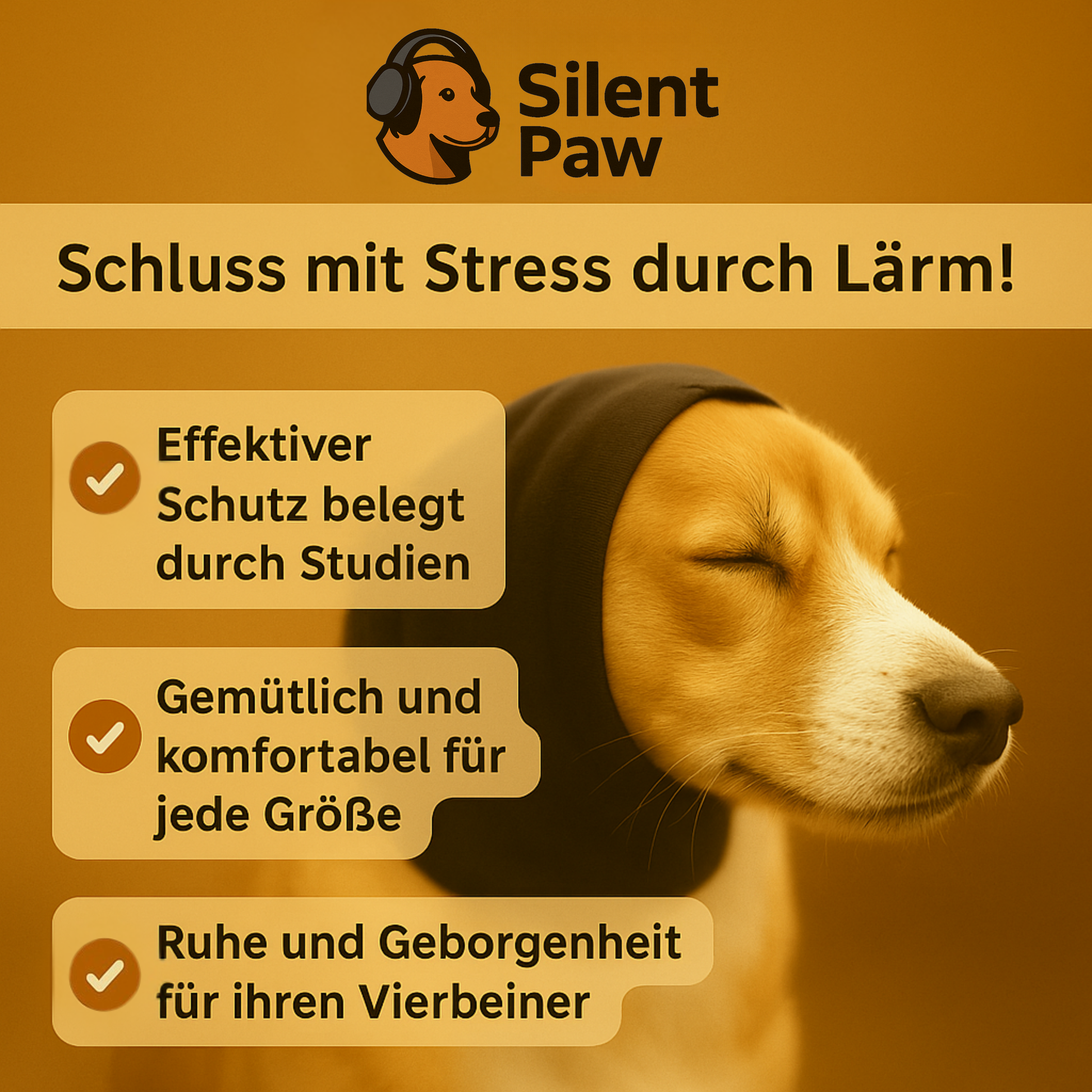 Millionen Hunde leiden jedes Jahr unter Feuerwerk, Donner oder Stadtlärm. Mit SilentPaw™ kannst du deinem Vierbeiner endlich Ruhe, Sicherheit und Geborgenheit schenken.